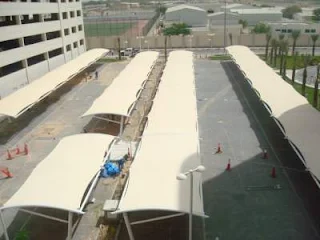 تعتبرمظلات المواقف العامة من الاولويات التي تكون للبنوك والمنشأت التجارية والعكومية نظرا لحماية سيارت العميل من الحارة كما ذكرنا سابقا, ومن الامطار والغزيرة ومن مميزات المظلات انها تأتي باشكال فريدة من نوعها وتكون ذا منظر حجميل جدا ورائع, تظهر قيمة خاصة للشركات والبنوك ومن افضل هذه الاشكال هي مظلات المواقف الاكس, المخصصة للعملاء يكون شكلها بسيط جدا ومناسب الاقمشة التي تناسب هذا الشكل قماش ال pvc عالي, الكثافة هناك صنعتان لهذه المادة من القماش وهي تعتبر الافضل في السوق الاول وهو الصناعة الكورية سعر رخيص وجودة ممتازة جدا هذا مايقال عنها النوع الثاني وهو الالماني افضل, من الكوري في القوة والمتانة لكن هذا لايجعل القماش الكوري غير مناسب بل بالعكس يعتبر ممتاز الكوري وسعره كما ذكرنا رخيص اما الالماني فهو قوي جدا وتمين, وسعره مرتفع قليلا عن القماش الكوري وهناك خمتان للقماش الكوري وهما pvc و pvdf وكلا النوعيتان ممتازة, وهناك قماش اخر يسمى قماش البولي ايثليين يعتبر من الاقمشة الاكثر شهرة والمطلوبة في الدوائر الحكومية ,هذا القماش الاكثر من رائع يأتي شكله مثل الخيش او الشبك وهو خفيف الوزن وعيتبر ارخص من قماش pvc الصناعات التي تكون لهذا القماش البولي ايثلين هي الصناعة الاسترالية, والكورية وهناك صناعة ردية في كلا الاقمشة لم يتم ذكرها وهي الصينية ...